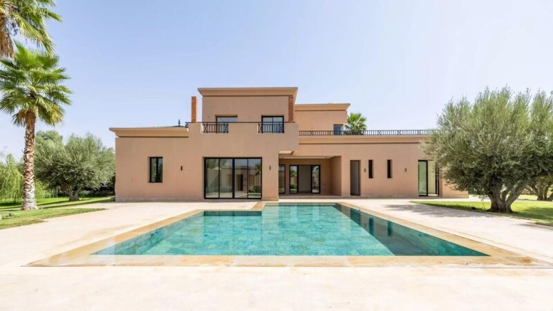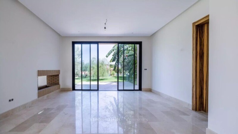 Villa Mona is a charming property located just a few kilometers from Marrakech's top golf courses. The villa's generous proportions and noble materials (wood panelling, marble, etc.) will charm you. Villa Mona opens onto a superb entrance hall leading to a double reception room with two living/dining rooms. The kitchen is fully equipped and semi-open onto the dining area. The ground floor also offers two bedrooms with storage and bathroom, as well as a magnificent suite with dressing room and marble bathroom. The luminous staircase leads to the first floor, which features a bedroom and a suite, each with bathroom and storage space. Outside, you can take full advantage of the Moroccan sunshine, summer and winter alike, with a splendid heated swimming pool in the lush, shady garden. You will also find an outdoor pavilion, which you can design as you please. Villa Mona also features a staff room, a garage, a technical room with electrical panel and pool maintenance. The entire house benefits from central heating, air conditioning, underfloor heating, double-glazing, soundproofing and thermal insulation. A well and solar panels power the property. For further information or to arrange a showing, please do not hesitate to contact us.