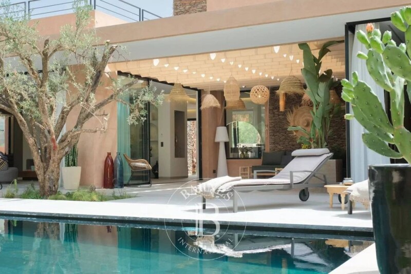 Contemporary villa for sale on a fully landscaped plot of 1020m this contemporary villa is located just before amelkis in a secure housing estate Architect-designed villa of 230M2 with 3 suites, living room with fireplace, dining room, fully equipped kitchen, utility room a beautiful 18m infinity pool, automatic gate, intercom She understands straight away air conditioning invent hot and cold in false ceilings for each room possibility of having a fourth bedroom Latest generation 300l solar hot water tank. Fully aluminum double-glazed windows. Garden with automatic and drip watering system; Insulation of the roof and the double partition wall. 120*120 tiles. Oak joinery in natural veneer. Kitchen equipped with American fridge sanitary jacob Delafond.