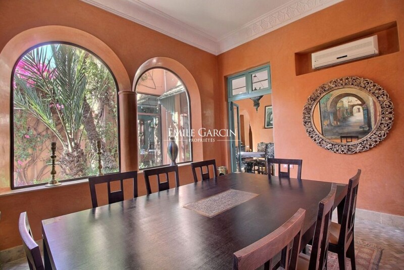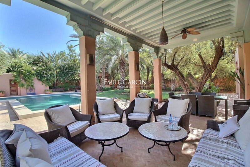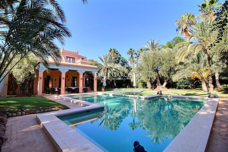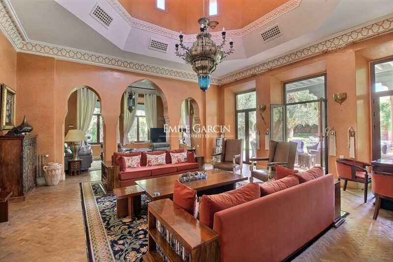 Villa sitting on 2,200 sq.m of magnificent grounds in the heart of the most beautiful residential area of Amelkis. Large reception area separated into several spaces (TV lounge, living room with fireplace overlooking the external patio and garden, dining room, home office). Six beautiful bedrooms each with dressing room and bathroom, including a master suite of 85 sq.m. Outdoor area equipped with large swimming pool (not overlooked), hammam, massage room, hot tub and several dining areas to be enjoyed throughout the day. Double garage. Two service quarters. House equipped with air conditioning and central heating. South facing.