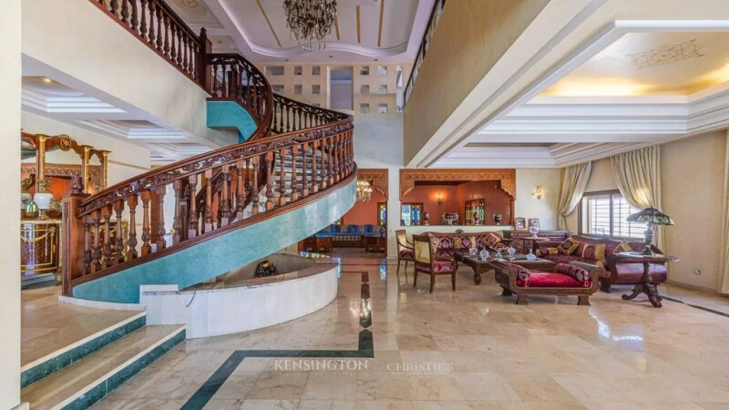 Villa Idealista offers extraordinary potential to create a home that a large family dreams of. Located in a quiet and prestigious area, this property extends over a land area of 997m² and offers generous and varied spaces with noble and authentic materials. The ground floor of the villa includes two traditional Moroccan lounges, bringing a touch of authenticity and warmth, perfect for convivial receptions. Additionally, three spacious and bright European lounges are ideal for relaxing with family or entertaining guests. A practical and functional bathroom is also available for guests. Upstairs, there is a master suite with private bathroom, offering comfort and privacy, three additional spacious and bright bedrooms perfect for family members or guests. A shower room and a bathroom complete this floor, as well as a comfortable living room for relaxing or working. The basement of the villa is a real additional living space, there is a large kitchen which will delight lovers of the culinary art, a welcoming living room for moments of relaxation, a gym to stay in shape, and a traditional hammam for moments of relaxation and well-being. There is also a functional laundry room to facilitate laundry management as well as two service bedrooms which provide additional space for staff or guests. Finally, a spacious and secure garage is available for two or three vehicles. Outside there is a large swimming pool to enjoy sunny days. The villa has a lot of potential to adapt it to the taste and needs of any family wishing to live in a large villa and in a peaceful area.