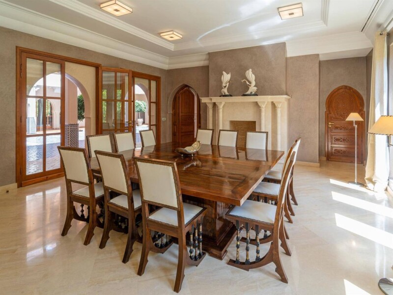 South of Marrakech, a palace of ± 2.500 m² and its two guest pavilions nestled on a plot of ± 4 hectares. Embellished by a south-facing park, the property enjoys a breathtaking view of the Atlas mountains. The main palace is built around a large Andalusian patio surrounded, on the ground floor, by several lounges, a dining room, a kitchen, and a laundry room. Upstairs, five bedrooms and their bathroom, which are accessible by the passageway that encircles the Andalusian patio or by stairs at the four corners of the palace, enjoy a view of the green park. The space is extended in a masterful way by a swimming pool of more than 40 meters. In addition, two charming guest pavilions, located on either side of the ornamental central stream, each offer two bedrooms, a living room, and a bathroom, allowing the occupants to benefit from certain privacy. Others: accommodation for staff, fitness and wellness area, hammam, spa. For more information, please contact Franck Le Péculier on +212 6 63 15 92 44.