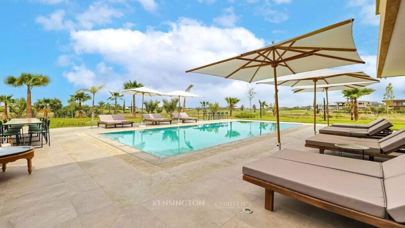 Discover an exceptional villa located in the heart of the prestigious Amelkis 3 estate, offering a unique living environment that combines luxury, comfort, and serenity. Built on a 1,450 m² plot, with exclusive enjoyment of an additional 1,000 m² overlooking the golf course and extending to the side, this property boasts breathtaking views and an unparalleled setting. With a total built area of 1,500 m², this architect-designed villa seamlessly blends elegance with high-end amenities. The 600 m² basement features a spacious 40 m² kitchen, a hammam with a scrubbing room equipped with two massage tables, two service bedrooms, a 40 m² gym, and a parking area for six vehicles. Additionally, it includes a technical room with a water tank, an air treatment system with regulation, and the machinery for the elevator. The ground floor spans 480 m², unveiling a majestic entrance leading to a vast living room, dining area, and Moroccan lounge, creating an elegant and inviting reception space. Three beautifully designed bedrooms, all opening onto the swimming pool, ensure absolute comfort. A dedicated coffee station equipped with a cooktop and oven adds practicality and convenience. The first floor, covering 280 m², is complemented by a 120 m² panoramic terrace. Four luxurious bedrooms, three of which offer stunning views of the golf course and pool, while the fourth features a private terrace, each come with an ensuite bathroom, separate WC, and dressing room. The elevator serves all levels of the villa, providing optimal comfort and accessibility. This exceptional villa, where contemporary design meets refined elegance, is an invitation to experience a unique lifestyle. The sale price is €2 490 000 excluding furniture, which can be negotiated separately with the buyer. A visit is essential to fully appreciate the beauty and scale of this extraordinary property. I remain at your disposal for any further information.