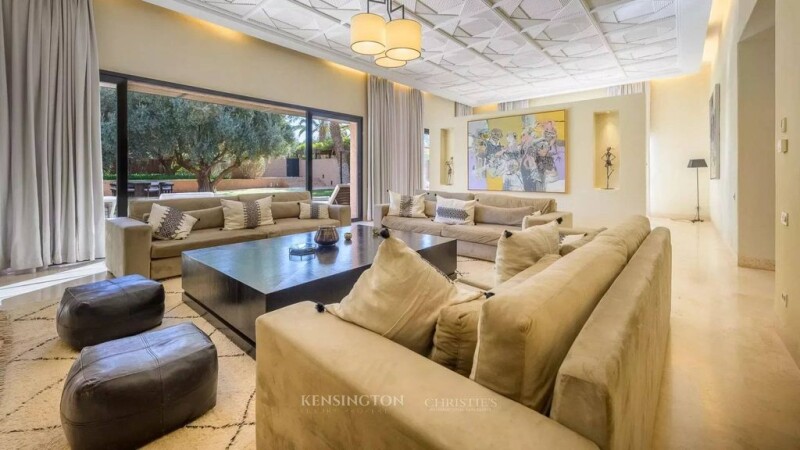 Here is the English translation: Two magnificent villas are available for sale within the prestigious Domaine Royal Palm, offering a luxurious and refined lifestyle. The first villa, set on a 3,100 m² plot with a total built area of 477 m², comprises 3 en-suite bedrooms, with the possibility of converting the gym and hammam into 2 additional bedrooms, as they were originally designed as such. It also features a spacious living room, a dining room, a kitchen with a pantry, service areas (laundry room and technical room), a wide corridor, a gym, and a hammam. Outside, the villa boasts a non-heated swimming pool, a terrace with a play area, and another terrace with a dining area, a lounge, sun loungers, and a beautifully landscaped garden. The second villa, located on a 2,100 m² plot with a built area of 380 m², offers a warm and modern living space. It includes 3 bedrooms, a living room, an indoor dining room, a fully equipped kitchen with a pantry, service areas (laundry room and storage), and a guest toilet. Outside, the villa features a heated swimming pool, a terrace with a "bed" area and a lounge, as well as another terrace with an outdoor dining area. These two villas, with a combined land area of 5,200 m². They benefit from an exceptional location within one of the region's most sought-after estates, offering unparalleled comfort, luxury, and privacy.