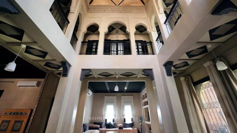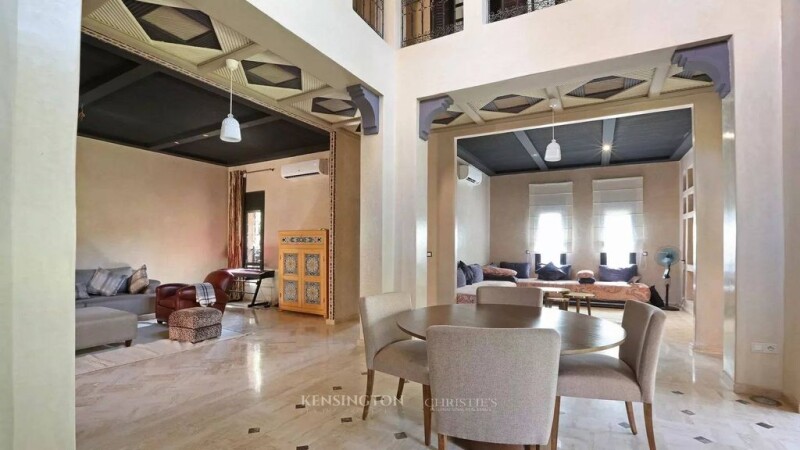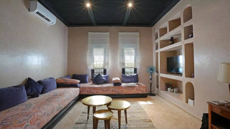 Villa Ayza, a charming riad-style villa, is located in a quiet, secure residence a few minutes from downtown. This charming Moroccan-style villa is surrounded by a pretty garden offering a view without vis-à-vis, where you can see the Atlas Mountains. The villa's terrace is pleasant with its gazebo and outdoor dining area overlooking the residence. Inside, there is a spacious and bright double reception area. The bedrooms and the master bedroom are located on the first floor. The Residence offers a large swimming pool accessible to all residents and free parking for all. For more information, do not hesitate to contact us.