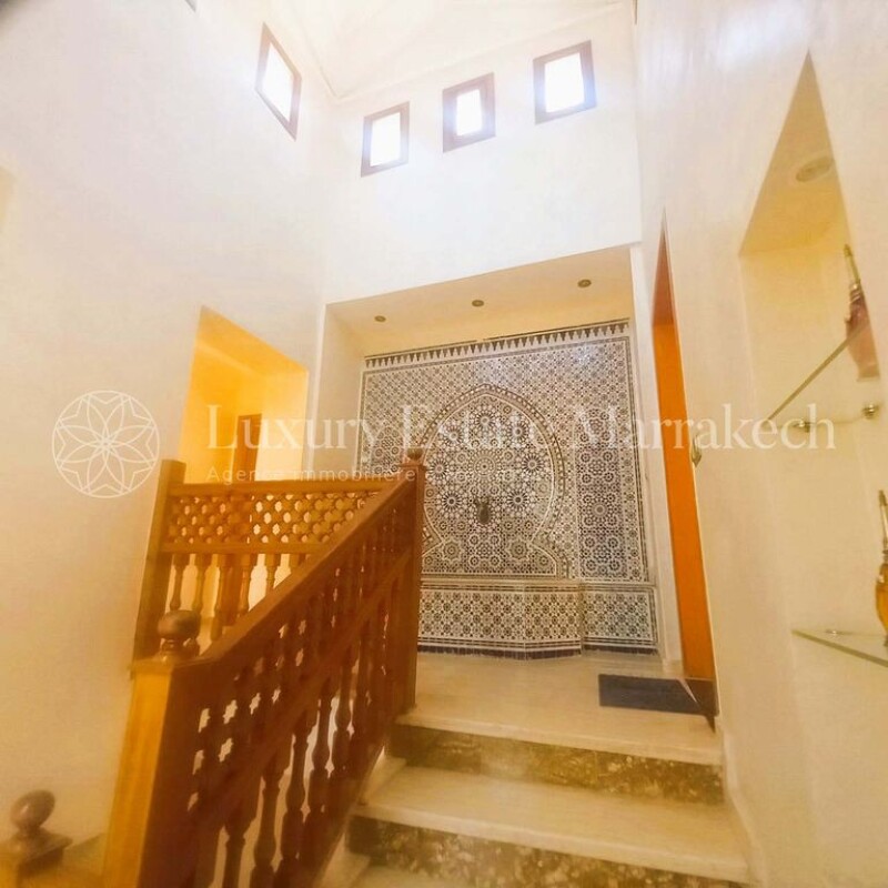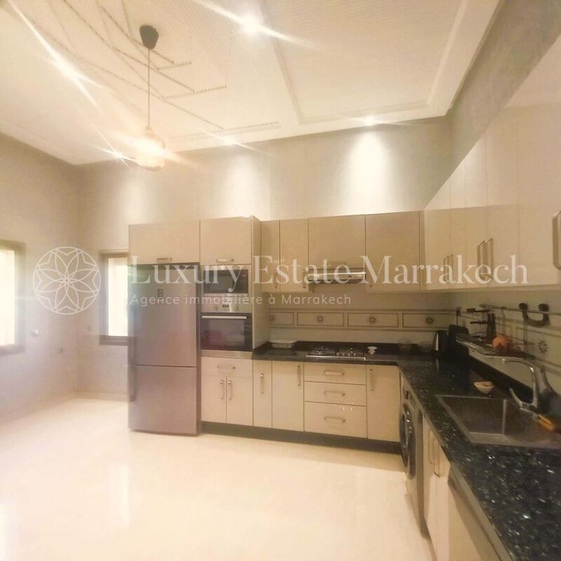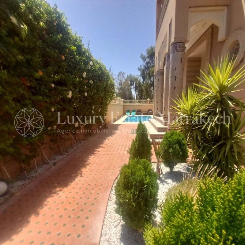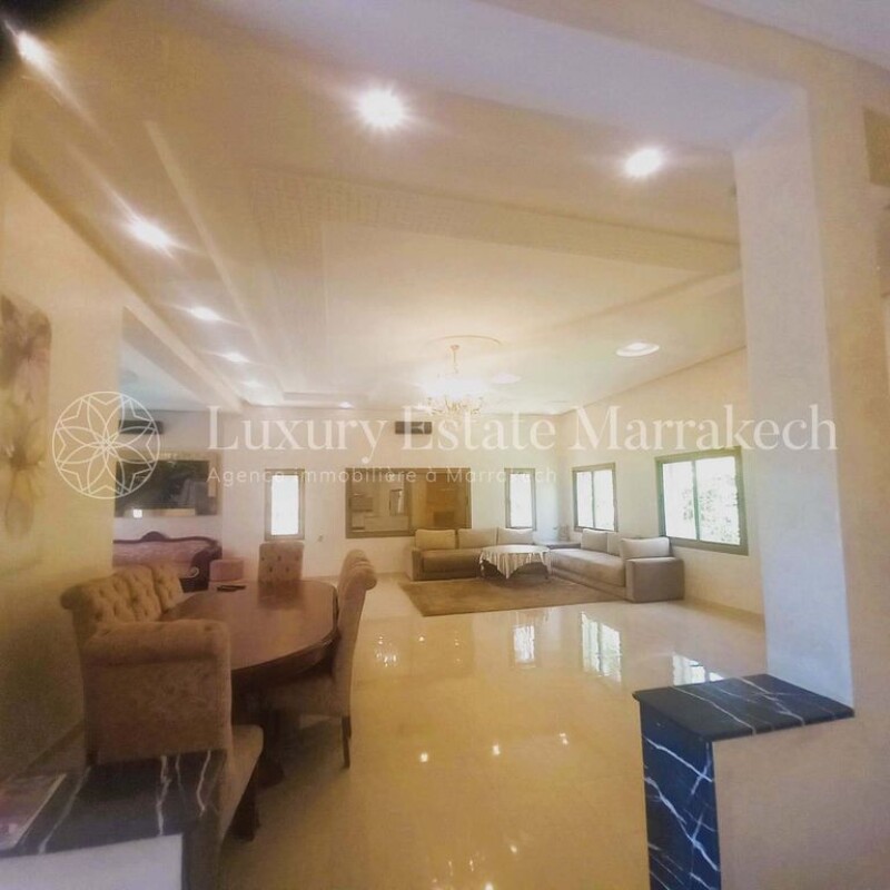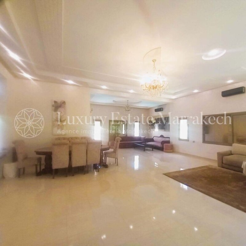 Golf Amelkis, charming 4 bedroom villa, swimming pool, hammam, garden 600 m2, plus 800 m2 for use. This villa offers you on a park of 600 m2 with an additional 800 m2 of land for exclusive use, 4 bedrooms, living room, lounge, equipped kitchen, domestic accommodation, basement, hammam. Solidly built, it is not overlooked. The Amelkis golf course is enclosed and guarded day and night. Low co-ownership charges. Visits on request.