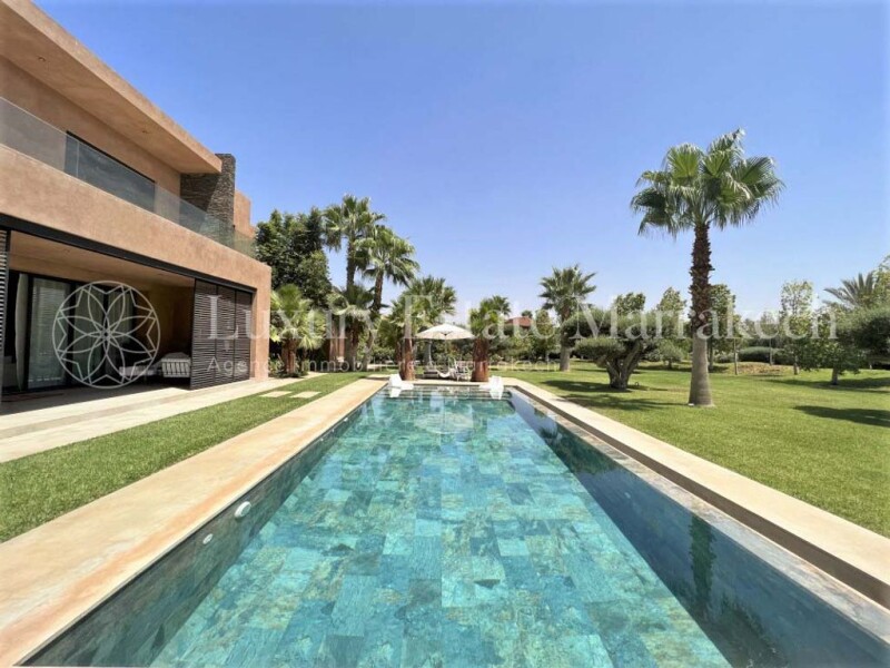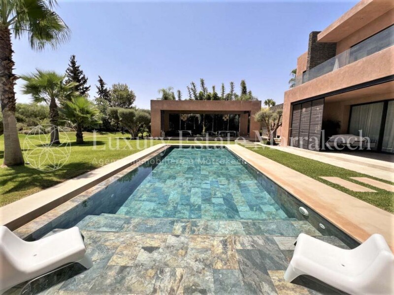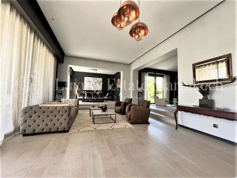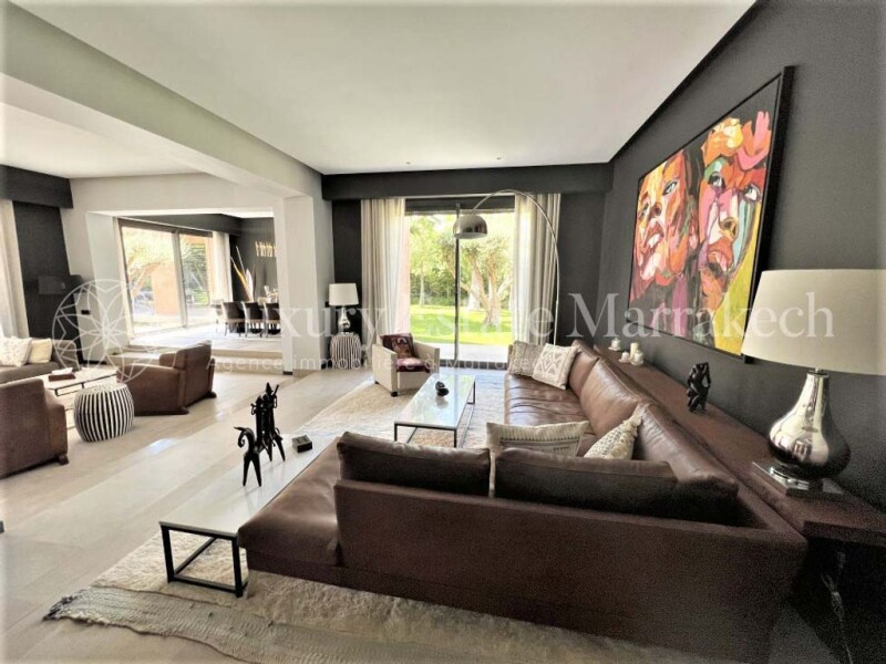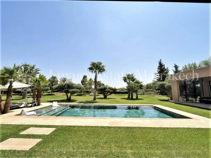 Magnificent villa 1st line of golf, facing south, without vis-à-vis. 700 m2 built on 4,200 m2 of parkland with 2 swimming pools (including 2,000 m2 for private use). Double living room, dining room opening onto the terrace and swimming pool, poolhouse with bar, large fitted kitchen, utility room. Night area, five suites, (bathroom, including a master with living room, dressing room and private terrace. Double garage. Centralized air conditioning, wifi, tel sat.