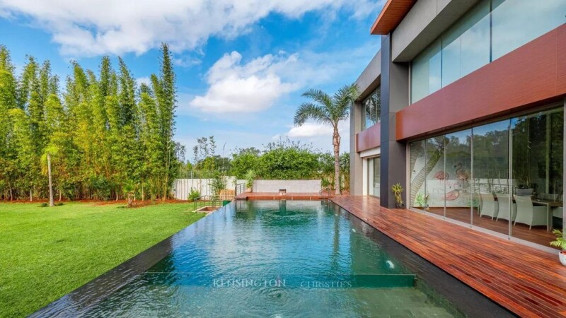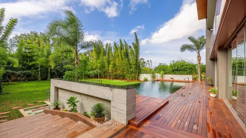 Welcome to your future oasis of luxury in the heart of Rabat. Villa Arij is a spectacular residence that embodies elegance and refinement. Nestled in a prestigious neighborhood, this exquisite residence offers an incomparable lifestyle for those seeking the ultimate in sophistication and comfort. From the moment you step through the doors of this exceptional property, you are greeted by an atmosphere of grandeur and luxury. The villa stretches majestically over 2 levels, offering generous space and an abundance of natural light in every corner. Discover the sumptuous interior layout featuring a lavish master suite with its private double dressing room, offering a peaceful retreat to relax and recharge. The four additional bedrooms, guarantee uncompromising comfort for family members and guests, while the five impeccable bathrooms offer an extra touch of luxury to every experience. Sumptuous living spaces include four elegant lounges, perfect for entertaining in style or simply relaxing with the family, as well as a sophisticated dining room for memorable meals. A well-appointed office offers a peaceful workspace for those who work from home or seek a quiet corner for reflection. Villa Arij also boasts two fully equipped kitchens, designed with state-of-the-art equipment and top-of-the-range finishes, offering an ideal space for food lovers and passionate chefs. Outside, a vast landscaped garden stretches out majestically, offering a magnificent setting for outdoor entertaining, lavish receptions or simply relaxing in a lush haven away from the hustle and bustle of everyday life. The pool is heated and can be cooled in summer, with a counter-current and, of course, lighting. Villa Arij represents the pinnacle of residential luxury in Rabat, offering a harmonious blend of contemporary design, sophisticated functionality and timeless style. A rare opportunity to acquire an exceptional residence in one of Morocco's most sought-after destinations.