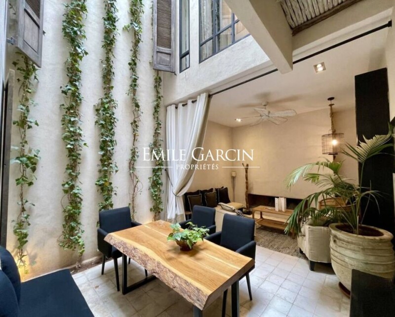 Riad presenting 110 sq.m of living area in the north of the medina. Fully rebuilt and tastefully decorated by its current owner, a renowned decorator. Covered patio comprising living room with fireplace and dining room, kitchen, three ensuite bedrooms, leafy furnished terrace, sunbathing area. Easy to access by car with parking facilities a few minutes away by foot. Pleasant and peaceful surroundings. This property would make the perfect rental investment or pied-à-terre in the medina.