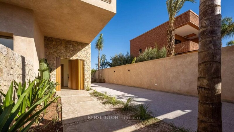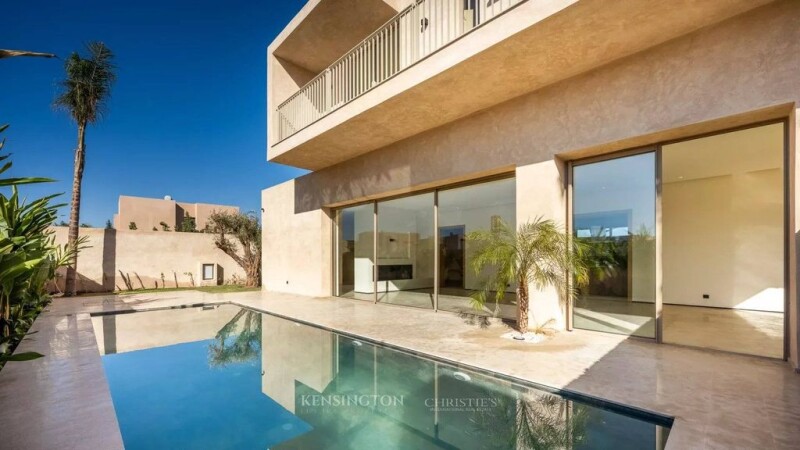 This magnificent brand-new villa, facing south, offers a stunning view of the Atlas Mountains. With a living area of approximately 240 m², it is set on a 529 m² plot overlooking a shared garden. On the ground floor, it features an entrance hall, a double living room with a lounge and dining area, as well as a TV lounge, a fully equipped kitchen, guest toilets, and a bedroom with an en-suite bathroom and dressing room. A laundry area is also arranged under the staircase. Upstairs, the villa includes two bedrooms with built-in wardrobes sharing a bathroom, along with a master suite featuring a dressing room, a private bathroom, a fireplace, and direct access to a wrap-around terrace offering a beautiful view. The outdoor space boasts a landscaped garden and a private south-facing swimming pool, perfect for fully enjoying the surrounding environment. Hot water is supplied by a 300-liter solar water heater, ensuring both comfort and energy efficiency. This villa combines modernity, comfort, and natural brightness.