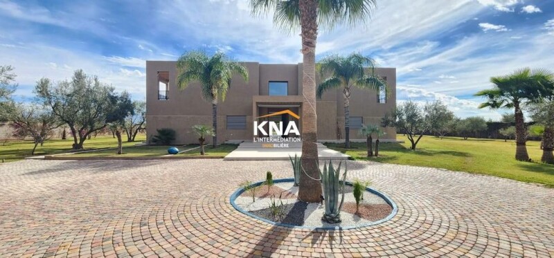 Contemporary luxury villa 20 minutes from the city center of Marrakech Land area: 10,000 m2 Living area: 700 m2 It consists of: On the ground floor: 1 Triple Living room very bright thanks to large bay windows, with a central fireplace 1 Dining room area 1 Beautiful suite with bathroom and dressing room, reversible air conditioning 1 Large equipped kitchen with freight elevator opening onto a large garden terrace On the 1st floor: 4 Beautiful suites each with bathroom, dressing room, terrace and reversible air conditioning 1 Kitchenette area 1 Beautiful living room area with a terrace 1 Terrace with a beautiful view of the magnificent Atlas Mountains Spa (in the basement): 1 Hammam 1 Sauna 1 Small gym Toilets Miscellaneous: 1 Beautiful swimming pool Reversible air conditioning throughout the villa 1 Pool House 2 Bedrooms for the caretaker and staff Magnificent wooded garden Assets: High ceiling Very airy Wide stairs Selling price: 2,100,000 euros.