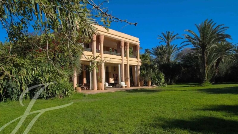 Designed by the iconic Bill Willis, this property is perfectly located at the entrance of the exclusive Palmeraie, a mere 10 minutes from downtown Marrakech. Featuring almost neo-classical timeless and elegant lines, the villa is nestled in a mature 1 hectare park hosting a swimming-pool and a shaded parking. Boasting a 980 sqm internal size, it comprises over 2 floors: an entrance, a dramatic staircase, a fitted kitchen, a large double reception area with fireplace facing the park, a dining-room and 4 suites one of which a master with private terracing. This titled property sold unfurnished requires an update.