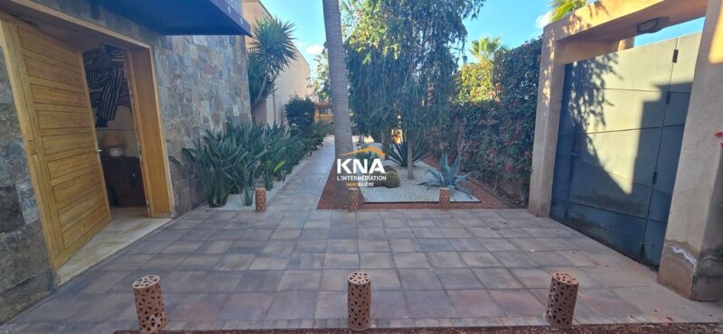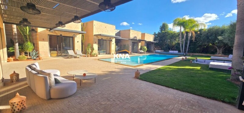 Very beautiful single storey villa, located in a private domain of 7 villas on the road to Amizmiz less than 10 minutes from downtown Marrakech. Land area: 2,000 m² Living area: 600 m2 It consists of: 3 pleasant lounges, 1 of which has a flat-screen TV (international channels) 4 suites, each with bathroom, reversible air conditioning 1 child's bedroom with double bed and television 1 large fully equipped kitchen Guest toilet Miscellaneous: A beautiful garden with trees and grass Terraces Large swimming pool 15m/6m (heating with supplement) with automatic water treatment by salt electrolysis + Automatic PH regulation device (new) Outdoor relaxation areas with deckchairs, comfortable beds and parasols Outdoor lounge on a covered terrace Outdoor lounge near the swimming pool 1 outdoor dining room for 8 people in the garden with a large parasol and barbecue Independent well for watering and the swimming pool (new Penter economic pump) Automatic watering Electric gate with outdoor intercom Security cameras 2 staff accommodations in the basement with shower, kitchen, toilets etc. 1 Garden Shed for the gardener Spa 1 Traditional Hammam 1 Traditional Sauna Gym Advantages: Not overlooked Quiet Redevelopment and interior decoration in 2023 2 to 4 km from the Noria, Argan, Atlas, Royal Palm Golf courses 5 km from the airport Sale price: 1,700,000 euros.