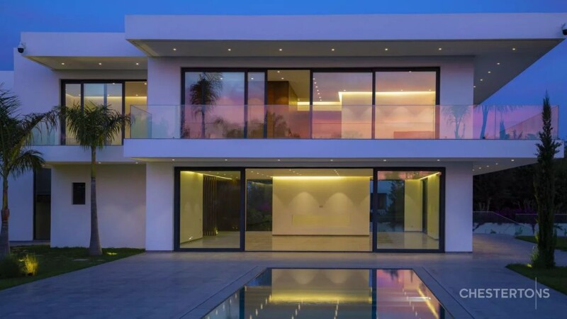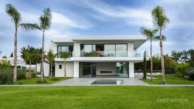 The villa is built on a plot of 1800M2 in the heart of the residential district of the ambassadors in Rabat. built on 3 levels (U + Grd + 1st floor) totaling a living area of 690M2. Designed by a renowned architect, it presents an alliance of modernity and sobriety. Large openings to the garden, its 4 facades, its ceiling height of 4.20 M ensure maximum brightness. The symmetry of the building is aligned in length with its rectangular swimming pool, equipped with a wall fountain.