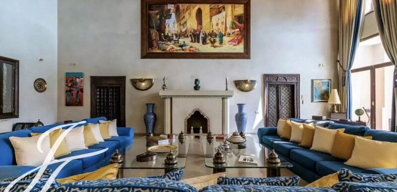 This property is brillantly located in the ultra exclusive Palmeraie of Marrakech, less than 20 minutes from downtown Marrakech and a mere 10 minutes from major golf courses. The architect wished to revive the spirit of the Palais Rhoul that he previously designed, combining a substantial circular swimming-pool with a decor of antique columns : the result is quite dramatic ! Set on a mature 2.3 hectare park with multiple species, the ground include the villa with 800sqm internal size, a caretaker’s house, outbuildings and a guest pavilion. The main villa comprises over 2 levels : large reception areas opening onto the pool and its shaded terrace, a fitted kitchen, 6 welll appointed suites, 3 of them of the first floor with private terracing. The last suite is located in the outside pavilion. Noteworthy, the property comes with 2 title deeds : this is therefore possible to build a second villa on the estate. This villa sold furnished would be perfect either as a luxury private residence or as an exclusive rental venue.