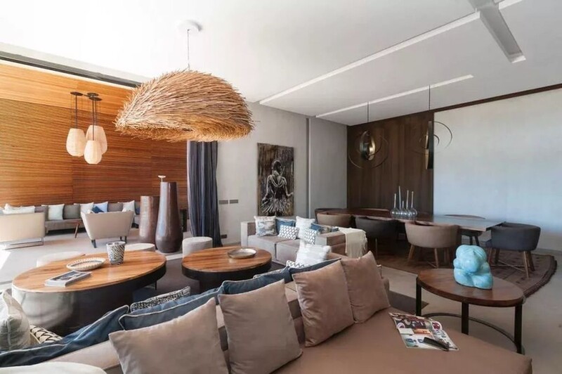 Impressive contemporary villa of 750m², on a 2000m² plot of land, with a 30-meter-long heated swimming pool, 6 bedrooms, a cinema room, and a hammam. The house is heated with underfloor heating, a biomass boiler, and a Brizzair air conditioning system that reduces operating costs by over 60%. The property is located at km 7 on the Amizmiz road, with 6 golf courses within a 7-minute drive. Most of the construction materials used come from Europe.