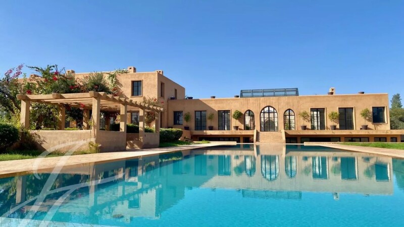 This property is enviably located in an exclusive gated community with golf course less than 15 minutes from downtown Marrakech. The villa is nestled in a beautiful manicured 1 hectare park hosting a substantial swimming-pool and a tennis court. Boasting a 2 100 sqm internal size spread around a leafy courtyard, it comprises over 2 floors: 2 living-rooms, a dining-room, a home cinema, a fitted kitchen as well as 8 suites, 2 of them masters. Noteworthy: the basement comes with a heated pool, a full spa combining a hammam and a room for treatments as well as a games room. This titled property requires a full refresh.