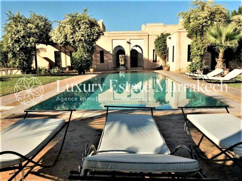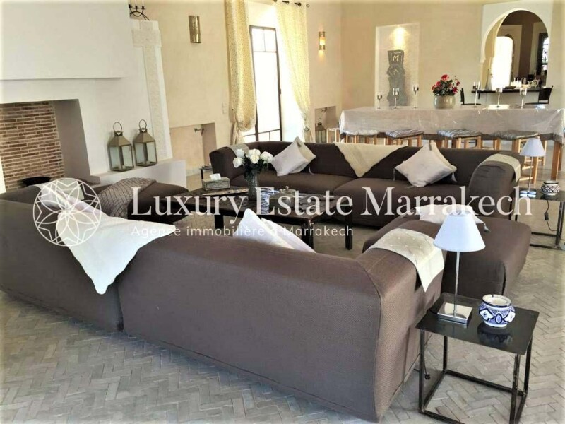 VERY NICE VILLA OF 7 BEDROOMS, 650 M2, ON A 2 HECT PARK, SWIMMING POOL, QUIET, VIEW, 15 MINUTES FROM THE TOWN CENTER Easy access villa, no track, not isolated, the 2 hectare park is fenced, the villa offers over 750 m2 built, 7 bedrooms and suites, 6 bathrooms, guest toilets, living rooms, dining room and large swimming pool with views of the snow-capped Atlas. Equipped kitchen, reversible air conditioning, tel sat, wifi. Very good build quality. Sold furnished, low charges, high rental value.