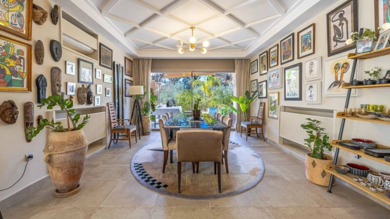 Discover a charming property nestled on a 4,970 m² plot, offering a true haven of peace on the Route de Fès in Marrakech. This two-story villa impresses with its generous spaces and refined features. On the ground floor, a majestic triple reception area, bathed in natural light through large bay windows, opens onto a spacious terrace and a swimming pool. An elegant dining room and a fully equipped kitchen with a pantry complete this exquisite living space. Two master suites provide comfort and privacy, each featuring its own bathroom and dressing room. One of them also boasts a private sauna. Upstairs, three beautiful bedrooms with en-suite bathrooms and private terraces offer breathtaking views of lush greenery and the Atlas Mountains in the background. For relaxation and wellness, the villa includes a spa area with a heated indoor pool, a jacuzzi, a massage room, and a hammam. A dedicated staff quarter, comprising two bedrooms and a laundry room, ensures discreet and efficient service. Nestled in the heart of a verdant setting with complete privacy, the lush garden is adorned with majestic trees and fruit-bearing plants. The property is also equipped with modern and eco-friendly solutions, including a 120-meter-deep well and 43 photovoltaic and solar panels, ensuring optimal energy autonomy.