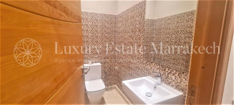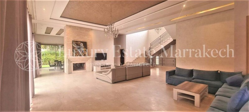 This Villa is located near the Amelkis golf course, it has 7 large suites, a spacious double living room, one of which has a fireplace. The best part of this villa is certainly its common spaces which harmonize perfectly with the living spaces. Ground floor: - 1 huge living room with fireplace - 1 dining room - 1 kitchen - 1 suite - 1 guest toilet 1st floor: - 5 suites Basement: - 1 suite - Hammam - 1 living room - 1 gym - 1 housekeeper's bedroom - 1 opulent Villa toilet, with exceptional volumes and a careful finish.