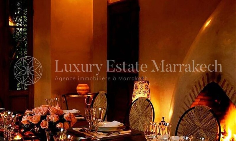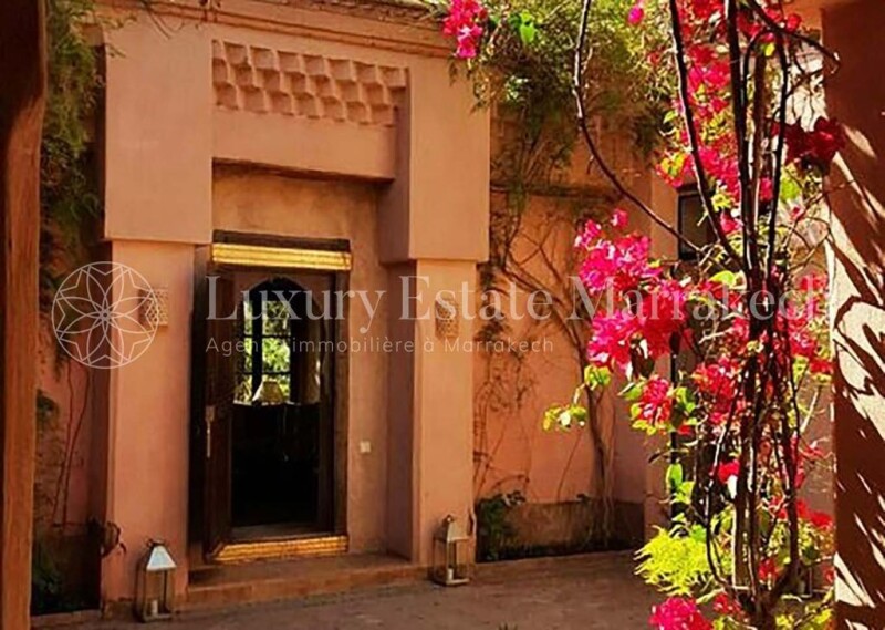 CHARMING PROPERTY OF 2 HECTARES, PALMERAIE, 9 BEDROOMS AND SUITES, 2 SWIMMING POOLS Time has stood still. The house, designed by architect Elie Mouyal, began as a simple country house. The current owners trusted him and Elie transformed this modest residence into a charming villa with 9 bedrooms and suites, with old-world charm. The irrigation basin has become a leisure basin drowned in vegetation. For swimmers, a 25m swimming pool has been set up on the north side of the property. From patios bathed in light, discreet passages communicating the various living rooms, dining room, bedroom and bathroom, one is caught up in the charm of this combined modern comfort (gas central heating, reversible air conditioning), but which has retained grace to its unique style, the essence of Moroccan architecture. Earth Construction ensures a particular serenity. The birds like it, which garden in the groves, will liven you up with their songs. Staff accommodation, kitchen, cold room, such sat, wifi. Treat yourself to a moment of authenticity and charm. You want to expand, a second villa of 900 m2 can be built on the 2nd hectare. Birds will frequent it too.