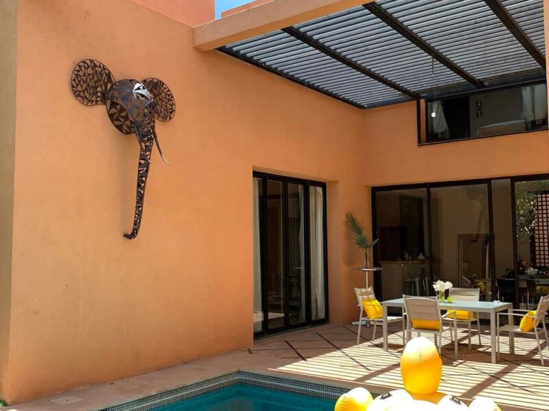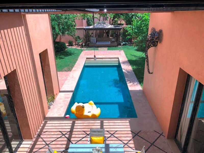 GOLF AL MADEN, VILLA 453 M2, 3 BEDROOMS, GARDEN, SWIMMING POOL, JACUZZI, HAMMAM, BUGGY PARKING. Very pretty villa, El Maden golf course, Ground floor: entrance hall, living room, kitchen, dining room, bedroom, bathroom, patio, service courtyard, technical room, laundry room, boiler room, toilet, buggy parking, swimming pool garden? meditation space at the end of the garden. No opposite 1 ° floor: 2 bedrooms with bathrooms, dressing room, terrace. 2nd floor: jacuzzi, hammam, bioclimatic pergola Very beautiful environment. Rare product.