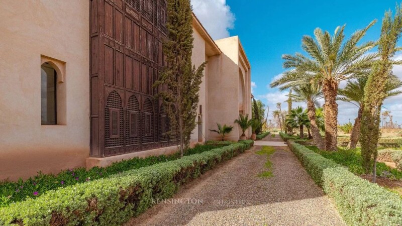 The project is daring: bring together 6 villas with 4 bedrooms, living room, dining room, fire corner and office around a huge central patio and its water lily pond. This project develops 4,700 m2 on 28,000 m2 of land. In addition, there is another 12,000 m2 plot of land, a virgin of any construction that still offers the possibility of creating rooms in the context of a boutique hotel. The whole throne in the heart of the Palmeraie with quick access. Ideal for a hotel project, especially since part of the property remains to be decorated.