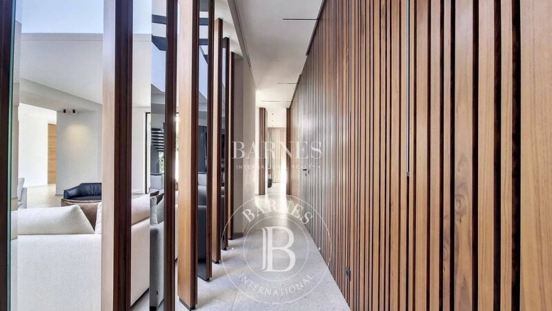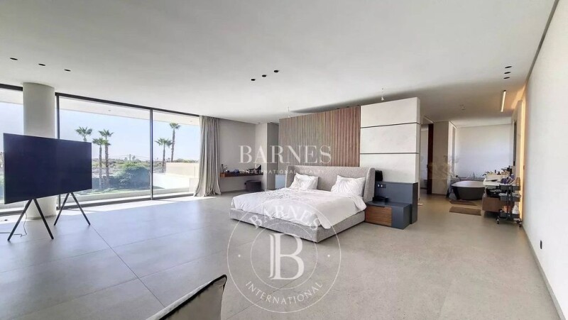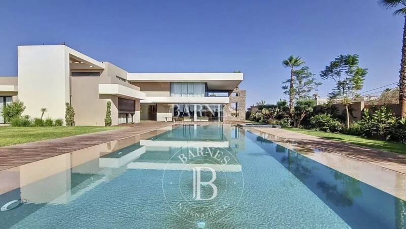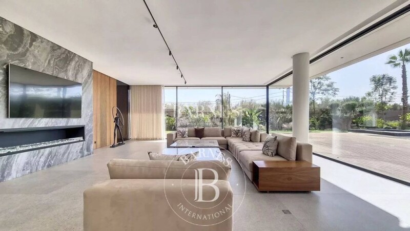 Magnificent contemporary villa on the Amizmiz road, less than 15 minutes from the city center. With a living area of 620 sqm built on a 3000 sqm plot, the property consists of a spacious living area combining a lounge and dining room, a fully equipped open kitchen, 3 suites on the ground floor, and two more on the upper floor, including the master suite. The villa is equipped with various modern technical features such as home automation, underfloor heating, reversible air conditioning, videophone, and more. A gym and staff accommodation complete the facilities. BREATHTAKING VIEW OF THE ATLAS MOUNTAINS FROM THE TERRACE.".