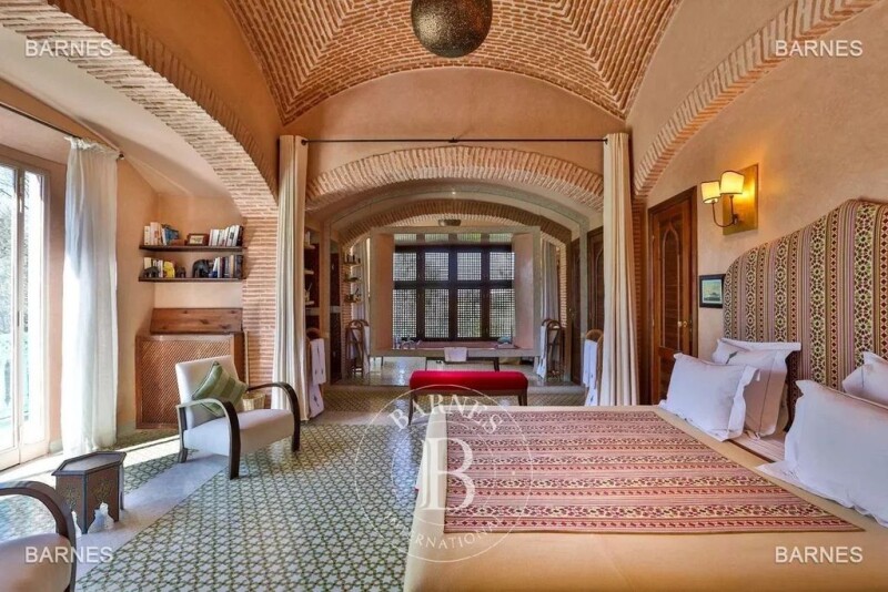Lots of charm for this property of Moroccan style, superb park of 2 hectares with 1 nice swimming pool and 1 swimming pool in the vegetation. This home is articulated between patio and terrace and possesses a tower type ksar with a view on all the palm grove. Nice entrance, large living room with chimney, dining room, 4 suite with bathroom, tv room, 2 children rooms with 1 bathroom, hamam. Central heating and reversible air conditioning, personal homes.