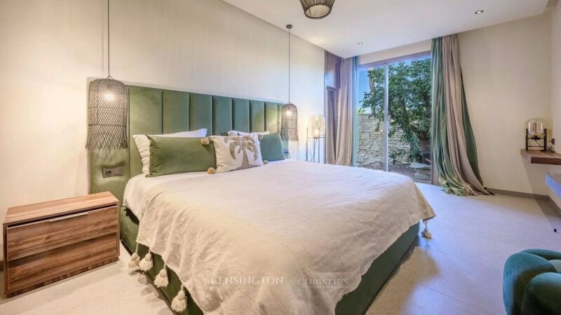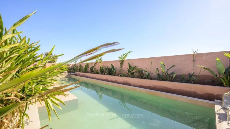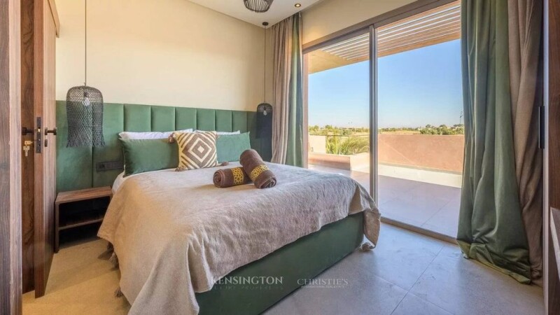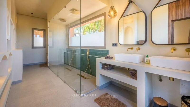 A New Architectural Gem in the Prestigious Amelkis Golf Nestled within the lush greenery of the renowned Amelkis Golf in Marrakech, this newly built villa seamlessly blends modern comfort with traditional Moroccan architectural elements, making it a prime address for those seeking refinement and tranquility. An intimate setting with complete privacy Set on a 850 m² plot with no overlooking neighbors, this villa spans three levels and offers a unique lifestyle. The garden, a true oasis of relaxation, features a luxurious heated swimming pool surrounded by various areas with different atmospheres, perfect for unwinding or hosting guests. Elegant and functional living spaces On the ground floor, the villa immediately charms with a bright and inviting living area, enhanced by an interior patio that brings a touch of serenity. This warm and welcoming space flows into a modern, fully equipped kitchen, ideal for entertaining. A first suite with its own private bathroom completes this level, ensuring comfort and privacy for your guests. Refined bedrooms with breathtaking views The first floor hosts four stunning bedrooms, each with its own en-suite bathroom, ensuring absolute comfort and independence. Among them, a spacious master suite opens onto a private terrace, offering sweeping views and moments of serenity. A basement dedicated to wellness The thoughtfully designed basement opens onto the outdoors, allowing natural light to flood the space. It features a traditional hammam and a fully equipped gym, perfect for relaxation and rejuvenation. Additionally, this level includes a service area with a staff bedroom and a laundry room. A villa at the crossroads of modernity and authenticity Blending contemporary design with timeless Moroccan craftsmanship, this villa strikes the perfect balance between comfort, aesthetics, and functionality. A rare opportunity to settle in one of Marrakech’s most sought-after locations.