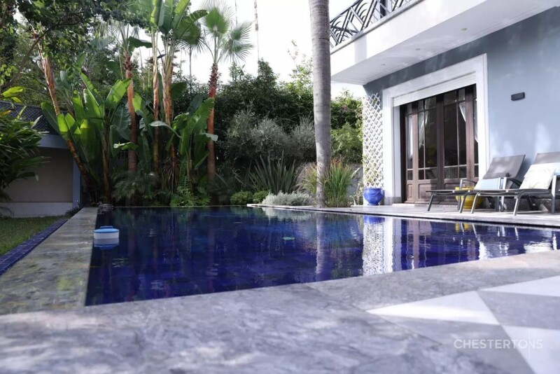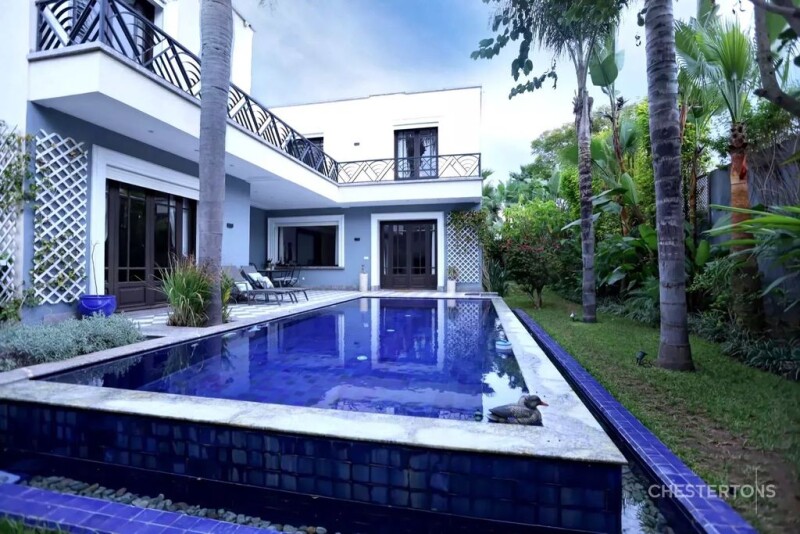 Exceptional Art Deco Villa for Sale – La Pinède, Souissi (Rabat) Nestled in the prestigious La Pinède Souissi district, this stunning Art Deco villa embodies refinement and elegance in an exceptional setting. Located on an ultra-secure street, just 30 seconds from Avenue Mohammed VI, it offers immediate access to all amenities and is only two minutes from Rabat’s urban forest, ensuring a perfect balance between centrality and tranquility. Set on a 754 m² plot, with a 600 m² built area spanning three levels and a fully equipped rooftop, this residence is distinguished by its elegant architecture, premium materials, and luxurious amenities. Designed for both comfort and functionality, it features six bedrooms and five bathrooms, including three spacious suites, along with expansive reception areas. Upon entering, the ground floor unveils a triple reception area, where the charm of the Moroccan lounge is highlighted by a handcrafted staff ceiling and a central fireplace in walnut wood and Italian marble. Adjacent to this space, a European-style lounge and dining room open onto breathtaking views of the pool and landscaped garden, creating a warm and luminous ambiance. A state-of-the-art kitchen, designed by Ixina, comes fully equipped with high-end appliances and marble countertops. This level also includes a guest bedroom with direct access to the pool and garden, as well as a marble-clad bathroom with premium sanitary fittings. The first floor, designed for privacy and comfort, is home to the master suite, a true sanctuary of relaxation. It comprises a spacious bedroom, a walk-in dressing room, and an additional room that can serve as an office or second dressing space. The en-suite bathroom, adorned with white Carrara marble, boasts a jacuzzi, Venetian mirrors, and a traditional Moroccan hammam, while separate WC facilities ensure added convenience. Two children’s suites, each featuring their own private bathroom, walk-in closet, and balcony, complete this level. A central lounge area provides a cozy and inviting space for family gatherings. Every bedroom is finished with solid oak parquet flooring, while the marble-clad bathrooms, featuring bathtubs, separate showers in Moroccan zellige, and premium fixtures, exude sophistication. A large L-shaped balcony enhances this floor, offering unobstructed views of the pool and lush garden. The rooftop terrace, designed as a private retreat, features an outdoor lounge with stone-built seating and a dining area, a serene Japanese garden, and a closed lounge area with solid oak parquet flooring and a striking marble fireplace. For added comfort, a bathroom with a shower and WC is also available on this level. The basement adds functionality to the villa, featuring a staff bedroom with a private bathroom and lounge, as well as a spacious storage cellar. Outside, the Bali-inspired landscaped garden captivates with its lush variety of trees and plants, creating a true oasis of tranquility. The infinity pool, crafted from Moroccan zellige tiles, seamlessly blends into the surroundings, complemented by a pool house, a back courtyard, and a fully equipped outdoor kitchen, including a dedicated laundry area. This exceptional property is fully equipped with modern installations to ensure absolute comfort, including central gas heating, ducted hot and cold air conditioning, surveillance cameras, an electric gate, a steam hammam with underfloor heating (compatible with gas and electric systems), automatic irrigation, and integrated outdoor lighting. A rare find in one of Rabat’s most sought-after neighborhoods, this villa seamlessly blends luxury, serenity, and functionality. For more information or to arrange a viewing, contact us today!.