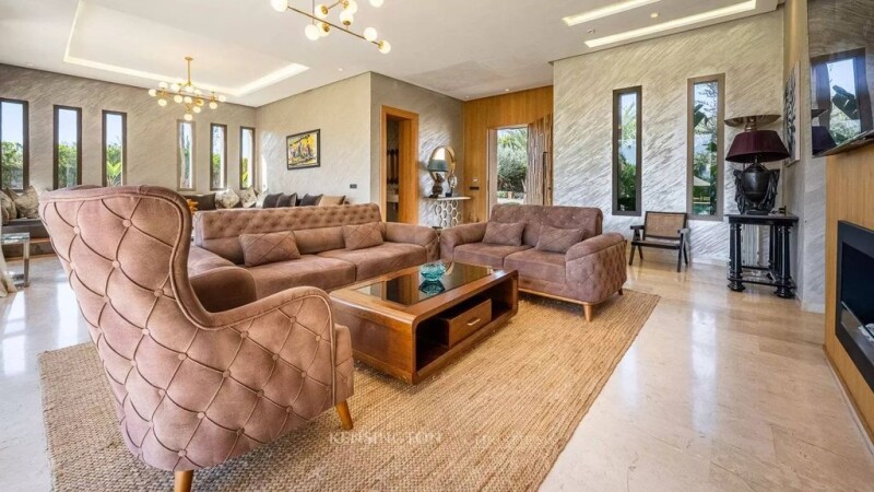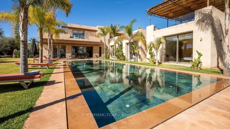 A few minutes from Sidi Abdellah Ghiat, in a rural environment, this luxury villa is a rare product by its good quality services, its tranquility and its park of 3000m². The entrance leads to a beautiful reception room with central fireplace, a dining room with fitted kitchen, 3 suites on the ground floor each with its own bathroom, an office and storage. On the 1st floor two bedrooms including a master suite with dressing room, bathroom and private terrace. An external staircase leads to a roof top designed to contemplate the sunsets and the Atlas Mountains. A Saharan tent around the Bali stone pool. A housing for the caretaker, well, solar panels for a reduction in costs.