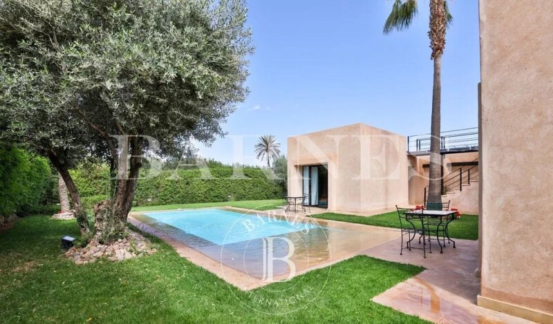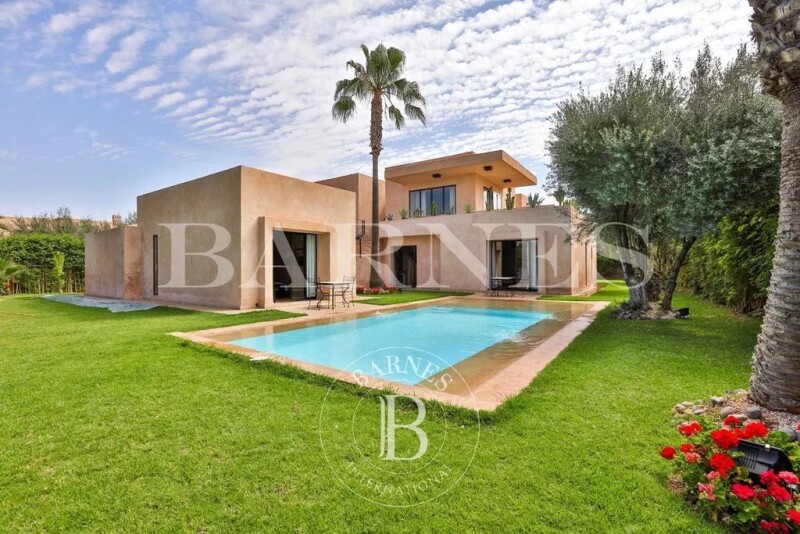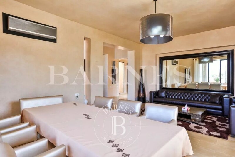 Beautiful architect-designed villa for sale on the Amelkis golf course, featuring a large reception room, dining room, and fully equipped kitchen on the upper level to enjoy the view of the golf course with numerous terraces and a suspended pool. On the ground floor, there are 5 beautiful suites with bathrooms and a beautiful pool.
