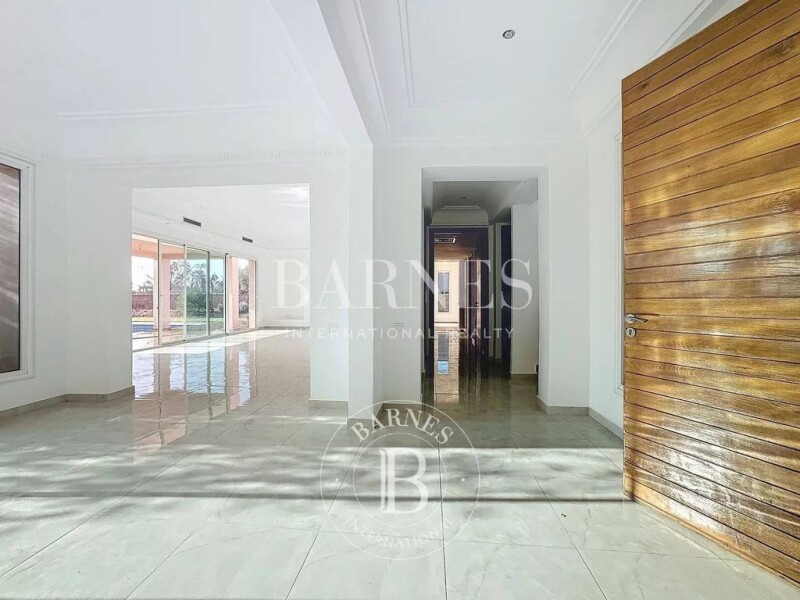 Discover this sumptuous property located in the prestigious Bab Atlas neighborhood, one of the most sought-after addresses in the Palmeraie. With a living area of 650 m², built on one hectare of land, this villa has been designed to offer open and bright spaces. It comprises a large, very bright living room with panoramic views of the garden, a dining room, a fully equipped kitchen, and a garden-level suite. Upstairs, there are three other very spacious suites, each with its own bathroom. The villa is south-facing, offering a breathtaking view of the Atlas Mountains.
