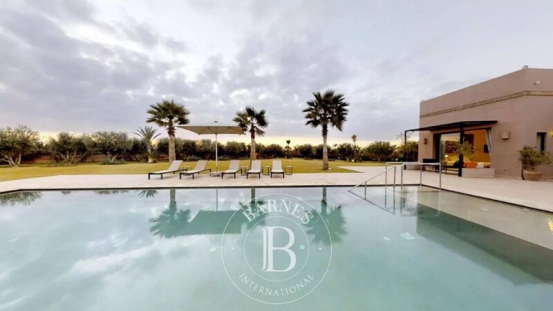 Contemporary villa on 2000m2 of land, within a completed program of 23 villas, on the road to Fez, the villa is built on 3 levels with on the ground floor a vast living room of 80m2, 3 bedrooms and a large kitchen. Upstairs 2 bedrooms with their bathroom and in the basement a large space that can be a gym, games room or a home cinema, as well as a hammam, a massage room and a staff room. The swimming pool is heated and has an electric roller shutter.
