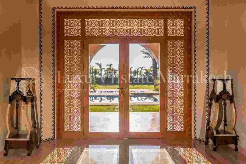 Modern villa, traditional spirit located on a park planted with 10,000 square meters, offering 7 rooms and suites, the constructed area of the villa being 1,430 m2 and the usable area above the basement of 900 m2 The villa serves as a showcase for all the traditional know-how of all Moroccan craftsmanship, while being equipped with all modern techniques to have optimal comfort. Quality of construction and fittings rarely equaled. A villa for the most demanding. Description On the ground floor: Ground floor 3 suites with dressing room and bathroom with shower and bath, from 25 to 45 m2. Guest cloakroom: 9m2 Large patio adjoining the dining room: 80 m2 Each bathroom is different in its structure as well as in the materials used (marble) 1 bedroom with fireplace 1 very large living room 3 spaces that can be separated and 1 space with fireplace 132 m2 Entrance 14 M2 1 dining room with zelige fireplace 40 M2 1 magnificent kitchen with central island, office 28 m2 office 9m2 1 guest WC. Level 1 2 suites of 30 and 38 m2 with dressing room and bathroom with shower and bathtub for one and Italian shower for the other. Each bathroom is different in its structure as well as in the materials used (marble). 1 bedroom with fireplace. Level -1 Multipurpose room (sound system, home cinema pre installation, bright, bay windows on water wall: 73 m2 Hammam starry ceiling: 15 m2 Massage room with cloakroom: 15 m2 Shower and wc Service class: 90 m2 Class with water wall: 30 m2 Covered terrace around the swimming pool: 145 m2 Storage room Personal accommodation Laundry room Technical room Outside: Swimming pool with island (8x4) central 15 X 13 In the rose garden kiosk Cactée Rose garden Orange grove Caretaker's accommodation Gardener's accommodation Garage covered in wrought iron x 4 Useful area: 730 m2 Ground floor 170 m2 upstairs Excluding basement Technical: An electrical station dedicated to the ONE villa (20% - expensive than the Radeema) Well Technical station for the management of the 'water (manages flows and flows) manages the villa and garden watering, drip, controls the 2 water tanks (domestic and a garden) with vacuum pass and safety threshold for the domestic tank Septic tank Technical room for swimming pool ( possibility of heating it to Provide automatic watering throughout the garden Home automation: Complete sound system for the villa as well as swimming pool and covered terrace and kiosk Management of air conditioning, lighting, cameras, sound system controlled by a dedicated application (iPad, etc.) Telephone switchboard Centralized television Internet Decoration: Handmade by renowned craftsmen Carved plaster ceiling Painted ceiling Carved wooden ceiling Zellige ceiling entrance Solid walnut doors Partly carved and cedar windows Floor in volubilis travertine marble Zellig fireplace worked in a modern style Accompaniment for furnish or bring personal elements to the villa (gym, cinema, etc.).