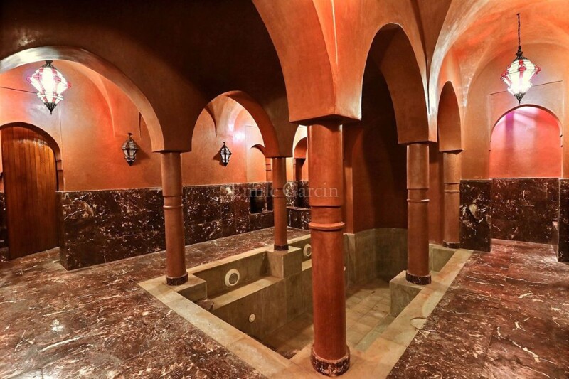 Elegant residence offering 3600 m² of living area on 2.3 hectares of leafy grounds. The property features anywhere between 9 and 12 bedrooms depending on the choice of layout, in addition to beautiful reception rooms, a library, a study, a magnificent spa, a very large games room and a home cinema. Its outstanding facilities include an elevator, underfloor heating and a large equipped kitchen. Heated swimming pool, numerous outbuildings and underground garage. Located a few minutes from the centre of Marrakech.